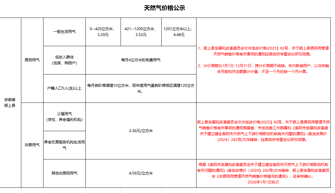 颍上县发展和改革委关于我县城区天然气价格有关问题的通知